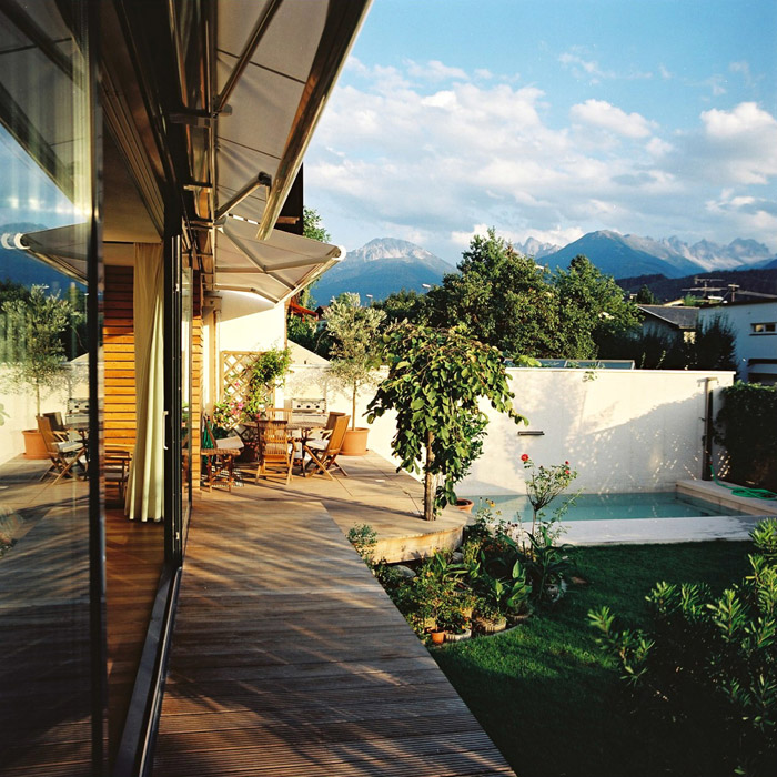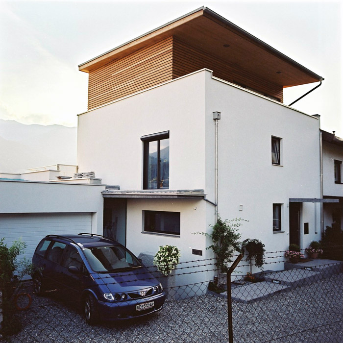 Somit war von vornherein klar, daß eine Erweiterung des Wohnraumes nur in Richtung Süden bzw. in die Höhe des Baukörpers möglich war.