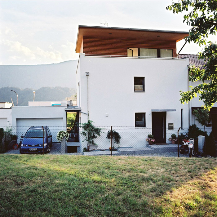 Hauptproblem bei der Entwurfsaufgabe waren die zahlreichen Wünsche des Bauherrn, dem gegenüber ein kleines Grundstück mit nur 385 m² stand.