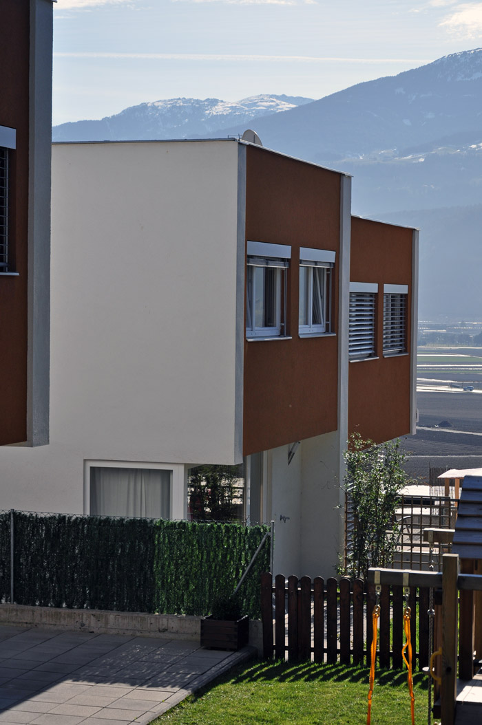 2007, „2x2“, Winkelweg in 6063 Rum Reihenhausanlage mit 4 Doppelwohnhäusern für die Trend Wohnbau GmbH.