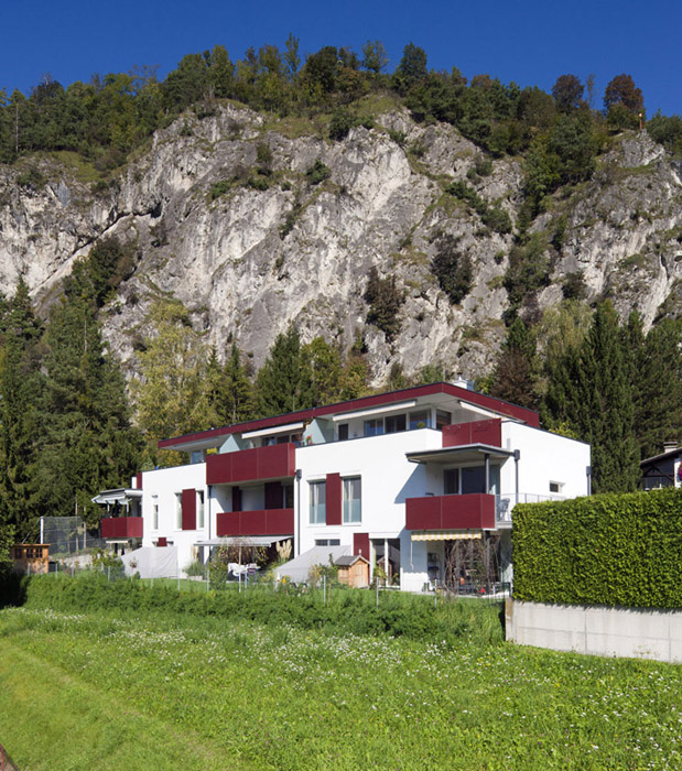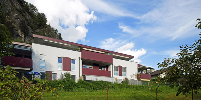 Auf einem sehr sonnigen und ruhigen Grundstück am westlichen Ortsrand von Zirl hat die openhouse Bauträger GmbH eine kleine Wohnanlage mit 7 Wohnungen zwischen 78m2 und 149 m2 errichtet. Die unmittelbare Umgebung ist mit Einfamilien- und Doppelhäusern eher locker bebaut. Dazwischen liegen großzügige private Gartenflächen und vereinzelte Obstgärten. In unmittelbarer Nähe befindet sich das Zirler Freischwimmbad. Der längliche Baukörper ist nach Südwesten ausgerichtet und besteht aus Erdgeschoss, 1.Obergeschoss und einem Dachgeschoss. Den Erdgeschosswohnungen sind Gärten mit Terrassen zugeordnet. Die Wohnungen im 1. Obergeschoss verfügen über große Balkone (ca. 20m2). Die Dachgeschosswohnungen sind als Maisonetten ausgebildet und verfügen über große Terrassen (bis zu 78m2) mit herrlichem Ausblick. Zu jeder Wohnung gehört ein Tiefgaragenabstellplatz sowie ein versperrbares Kellerabteil. Für die Wohngemeinschaft gibt es zusätzlich einen Raum für Fahrräder und einspurige Kraftfahrzeuge sowie einen Trockenraum und einen Kinderwagenraum. Das Gebäude ist in Massivbauweise errichtet.